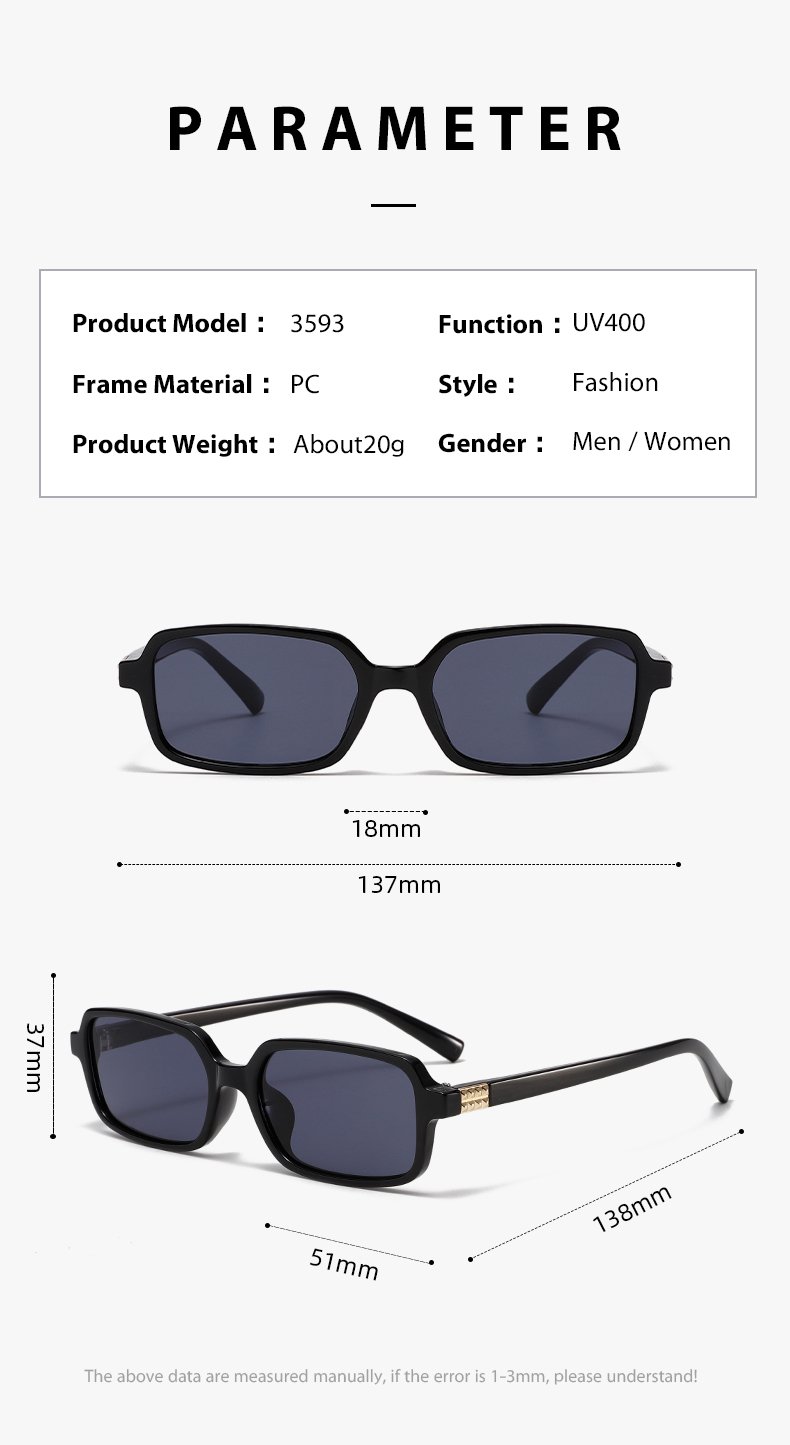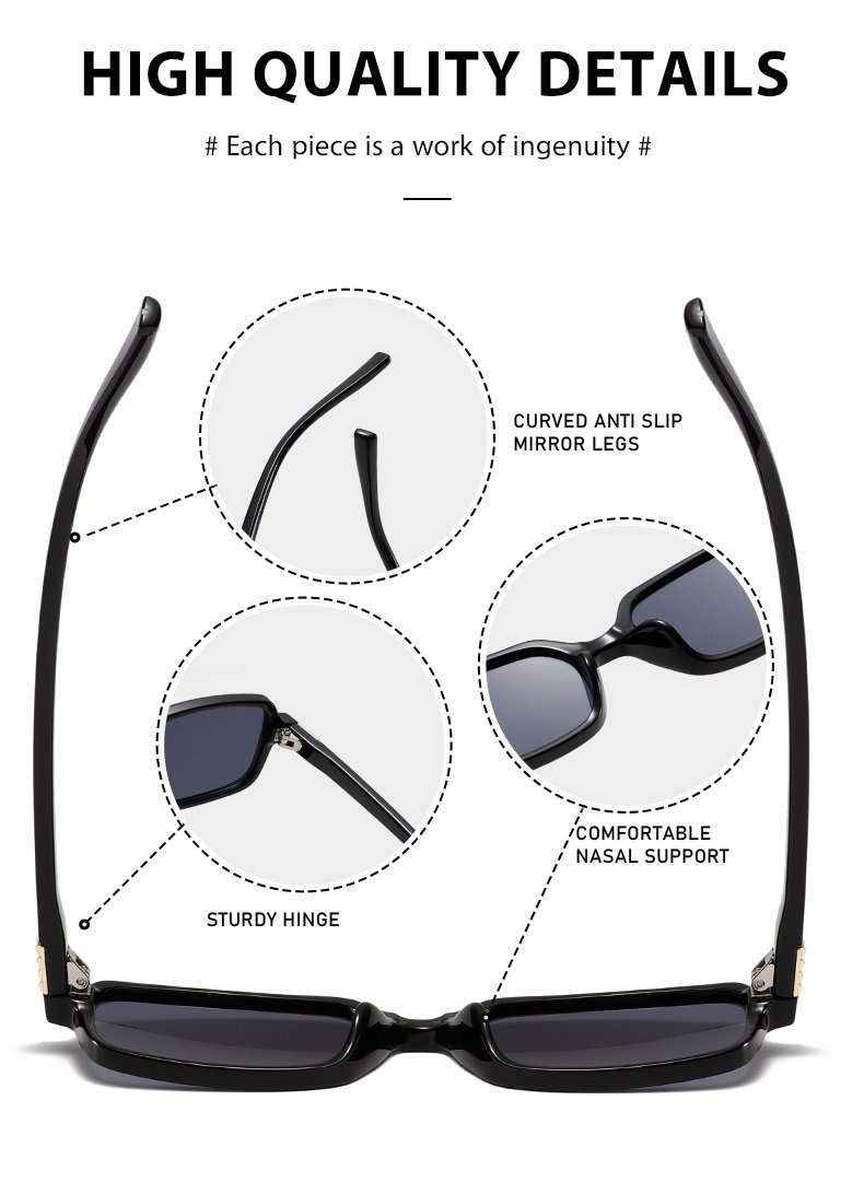 Crafted with chic square shaped style and high quality materials, they boast a trendy and versatile design. Available in a spectrum of colors, from classic blacks to vibrant gradients. The square silhouette adds a touch of retro – modern flair, suitable for various occasions, whether strolling in the city or hitting the beach.